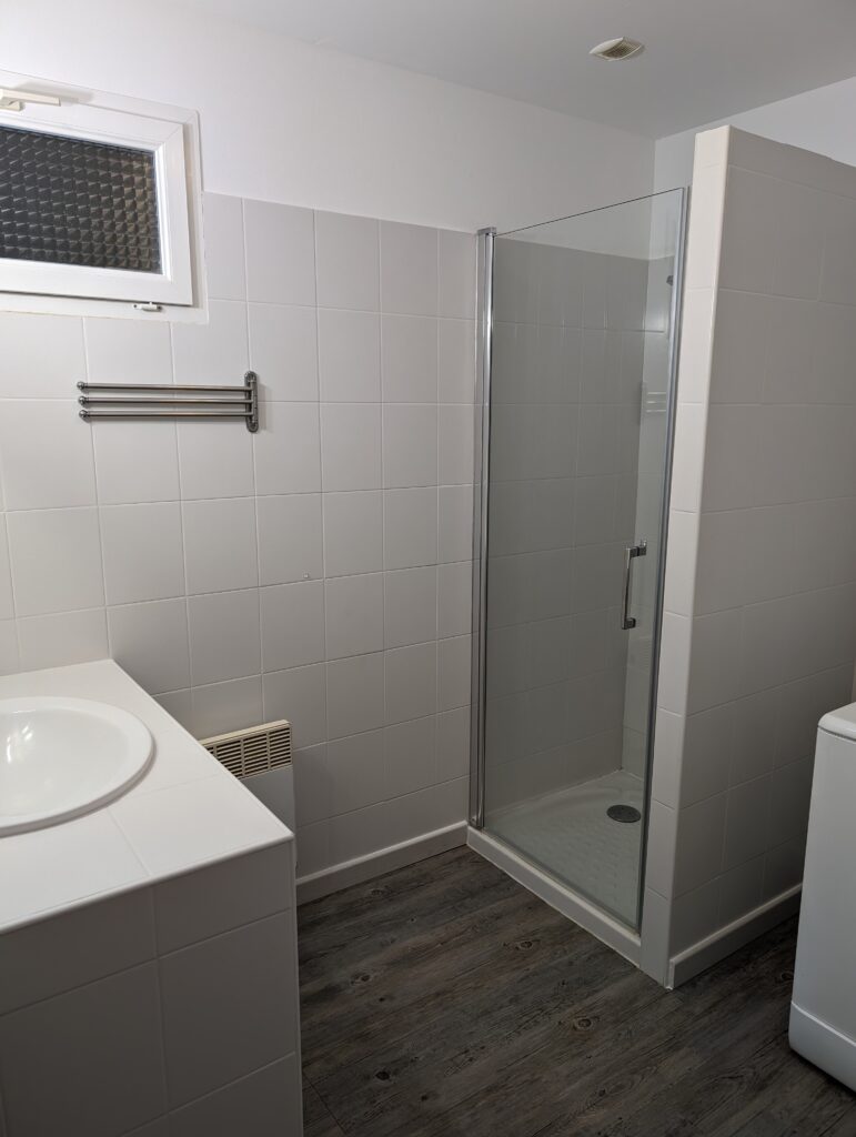 Il fait 45m² et est orienté Sud et Est pour le salon, Nord pour la chambre.